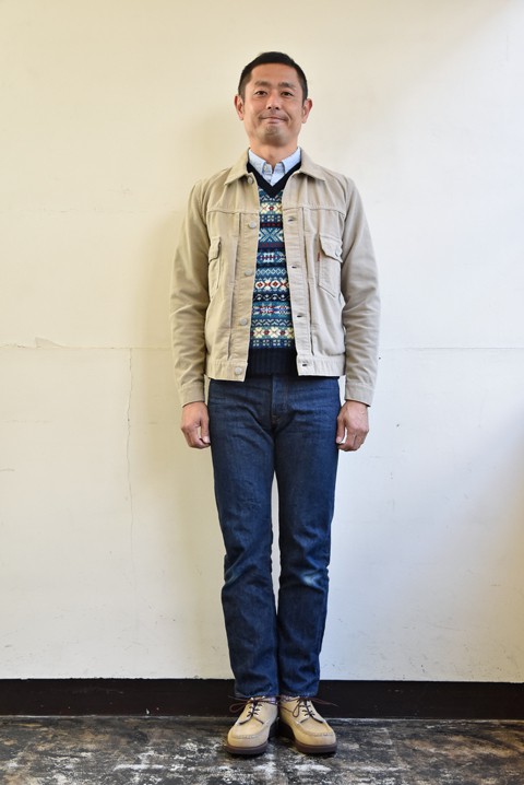 ベストって温度調節には最適なアイテムなんですよね~。これからの時期に大活躍します! このフェアアイルって柄編みのニットは、たくさんの色が入ってて賑やかでいいんですよ。特にJamieson'sさん家のフェアアイルは10色以上もの糸で組み合わせるので美しさが圧巻でしょ!ぜひともお試しくださいませ~! ●ジャケット Double Tree(ダブルツリー)  サイズ:38  ¥27,000- ●ベスト JAMIESON'S(ジャミーソンズ)  サイズ:38  ¥22,464- ●シャツ SERO(セロ)  サイズ:15  ¥9,990- ●パンツ RESOLUTE(リゾルト)  サイズ30×31  ¥23,760- ●靴 RussellMoccasin(ラッセルモカシン)  サイズ:7.5  ¥54,000- 身長176㎝ 体重68㎏ 足のサイズ;25.5㎝