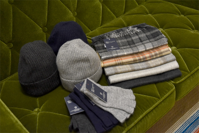 同じくカシミヤ素材のグローブとニットキャップもございます。