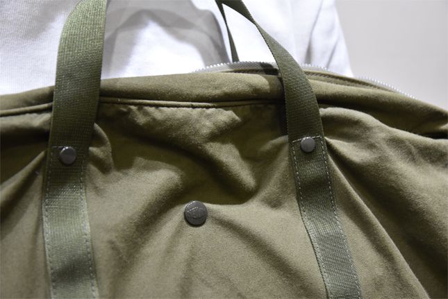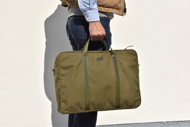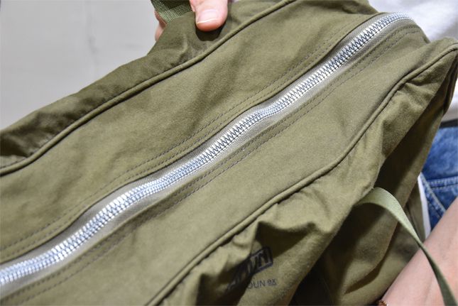 B4サイズがスッポリと収まるブリーフケースで、1泊2日の出張くらいならノートパソコンはおろか周辺機器、シャツと下着の替えくらいなら楽々収納可能でございます。やっぱりNOUNのデザインはひと味違いますね! ミリタリーテイストが男心を擽(くすぐ)ってくれます。きめ細かく織られた生地は薄手でありながらも軽くて丈夫!経年変化の様(さま)もお楽しみ頂けるシロモノでございます。何と言ってもこのバッグの極めつけは、インジェクションファスナーでございます。このファスナーがあるからこそ、このブリーフケースが成り立っていると申し上げても過言ではございません。インジェクションファスナーとは原料の亜鉛合金を溶かし、射出成型したもので作られてございます。しかも金属ヒレ付き。通常の金属ファスナーよりも滑らかで重厚感のある仕上がりになってございます。スライダー(引き手)もビンテージ調で雰囲気も良く素晴らしく良い感じなのでございます。