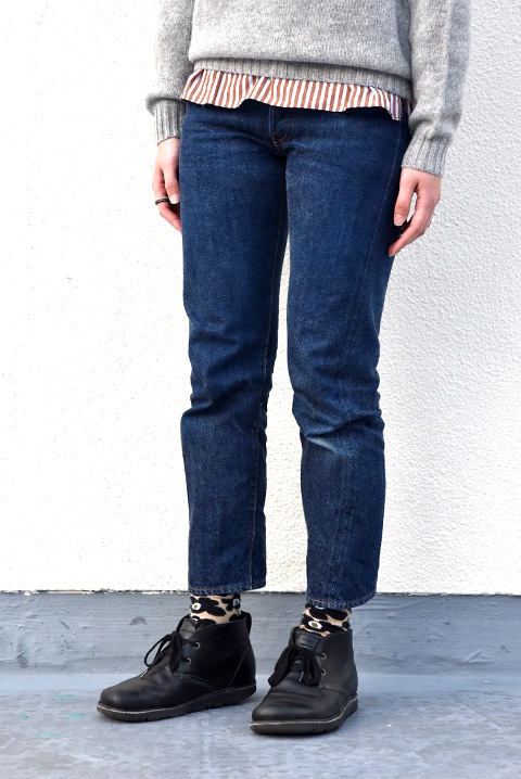 他にも、RESOLUTE(リゾルト)711をサイズアップで太めに穿いて大きくひと折りロールアップなんかも女性には好評の穿き方ですよ。
