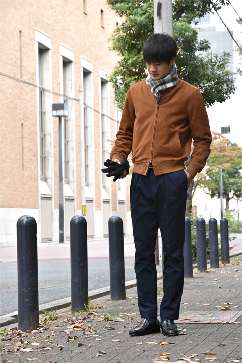 アウターはボリュームを抑えたGELLI (ジェッリ)のスエードジャケットでシュッと大人っぽく。