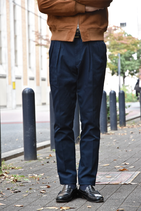 膝から下はしっかりテーパードが効いていてスッキリとしたシルエットで穿いて頂けます。