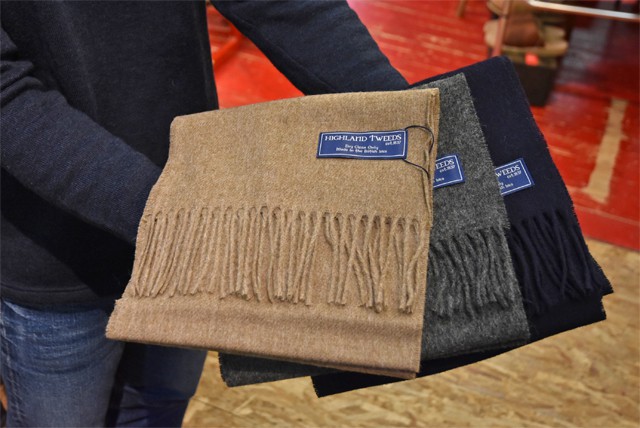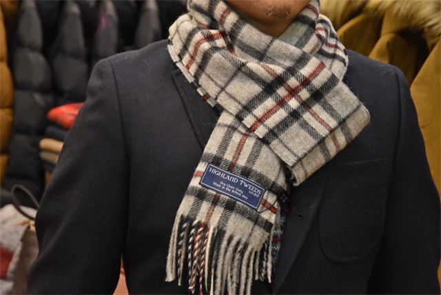 その中でもカラーバリエーション豊富なHIGHLAND TWEEDS(ハイランドツイード)のマフラーを。