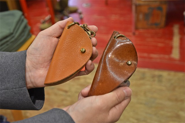 シンプルイズベストなキーカバー。頑張り過ぎないプライスも魅力です。 SLOW(スロウ) bono(ボーノ) キーカバー ¥3,132- 私物のキーカバー(右側)。使い込むとこんな雰囲気です。