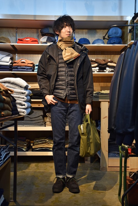 インナーダウンを差し込んでやると保温性も高まり、真冬も越せるコーディネートの完成です。