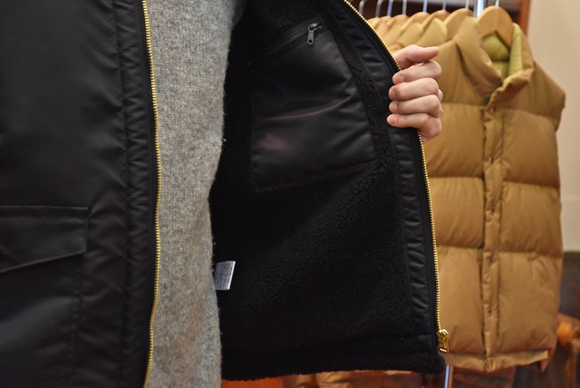 N.O.UN(ナウン)BOMBER NYLON  ¥31,320- 昨日のザボスタでもお気に入りとして紹介しましたが、今年のメインアウターです。 ついついマンパみたいなハイテクアウターを着がちなので、ちょっと気分も変えたくて。ワイルドな雰囲気漂う男前アウターです。 裏はボアですので暖かいですよ。リアル(作業着)との境界線がナウンらしいファッションを楽しめる一着です。