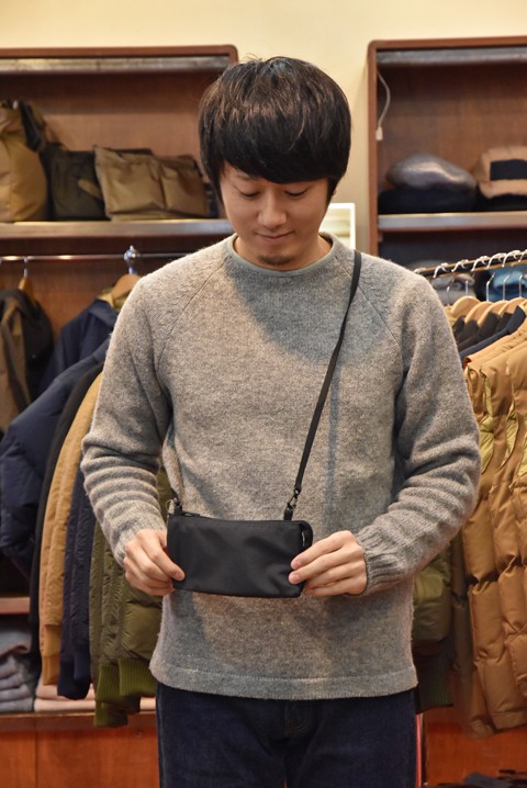 BAG'n'NOUN(バッグンナウン) TRIO 'M' II グレー  ¥5,616- ポーチのようにも財布のようにも使えるバッグンナウンのトリオ。 SとMで迷いましたがショルダー付きのMで。休みの日にご機嫌で使ってます。中はお札とカード、小銭入れ、プラスアルファくらいでええ感じです。旅行のサブバッグにもええ感じですね~。 こんな感じでアウターの中に忍ばせるのもおすすめです。冬のボリューミーなスタイルにミニバッグ。あると思います。