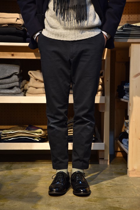 ●BARNSTORMER(バーンストーマー) ノータックチノパンツ ネイビー 美シルエットにやられたスラックス仕立てのチノパン。 コーディネイトはやはりパンツが重要。それを再認識させてくれた一本です。 ●SANDERS(サンダース) MILITARY DERBY SHOE このクオリティでこの価格。コスパに優れたレザーシューズは汎用性高く、ついつい履いちゃいます。 コチラおかげさまで完売致しました。次回入荷は来春を予定しております。【スタイル2】