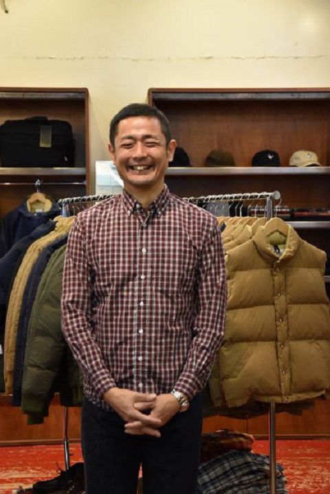 このSEROについてはZABOUの別注品でございまして、メーカー様のご配慮により生地から選ばせていただき拵(こしら)えていただいたシロモノでございます。形は通常と同じボタンダウンのフロント8つボタンのタイプでございます。(今年の春夏コレクションから仕様が変更になりました。)これがまた調子良くて、秋冬にはタータンチェックの柄が欲しかったんですね。でもメーカーさんの規格には入っていなかったんです。そこんところを話してるとじゃあ作りましょうかってお話をいただいてカタチになりました。素材は綿100%なんですが、タイプライターって呼ばれるハリとコシがある素材なのでパリパリしてます。それがまた心地よいのでご機嫌で着させて頂いてます。