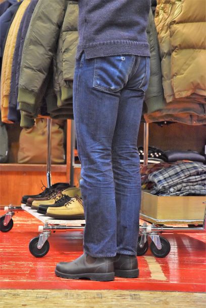 710の膝にすっかり穴が開いちゃって、「みすぼらしいからやめてください」とスタッフMに言われるので、リスリーさんにお直しに出すことにしました。その間パンツ一丁でお店に立つ訳にもいかず、急遽代打として起用したのが711でございます。しかもここ数か月で体重が5㎏も増えたので、必然的にバージョンアップでございます。W30でご機嫌だったのが、ついにW31に仲間入りでございます。しかしながら何度履いても良いですね「RESOLUTE」は。チ●ポがでかく見えるのがまた最高!新品を下す時にはいまだに胸がキュンとします。胸だけならまだしもアソコもキュンとしますから始末に負えませんがな。そのくらいRESOLUTEに惚れ込んでいるZABOUのオッサンなのでございます。
