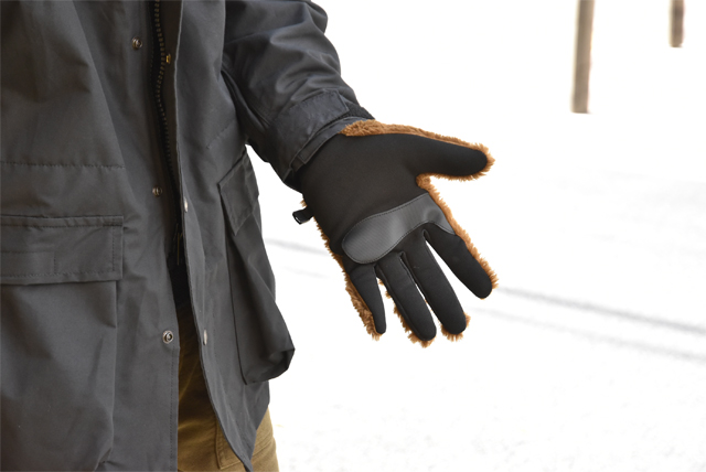 特徴としましては手の甲部分の毛足が長いフリース。