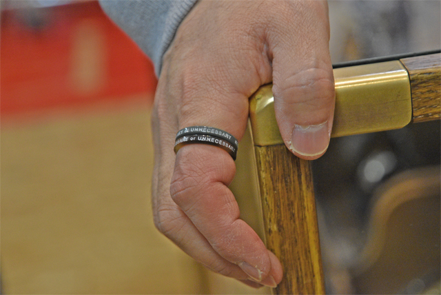 名前のとおり、ボタンの中心をくりぬきリングにしているアイテム。ナウンらしい独特のセンスが光るリングです。