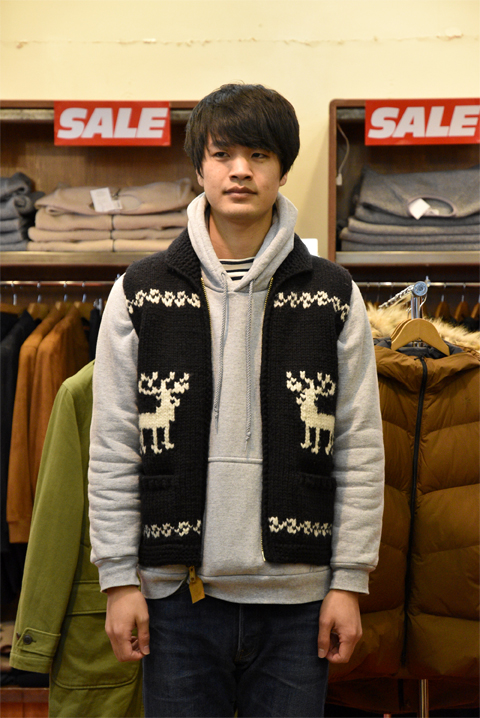 ●Canadian Sweater(カナディアンセーター)カウチンベスト トナカイ柄 ブラック ¥39,960-の40%OFF⇒¥23,976-