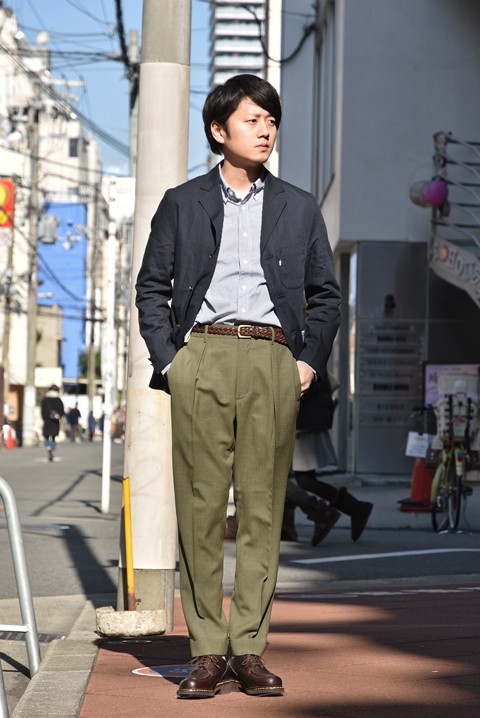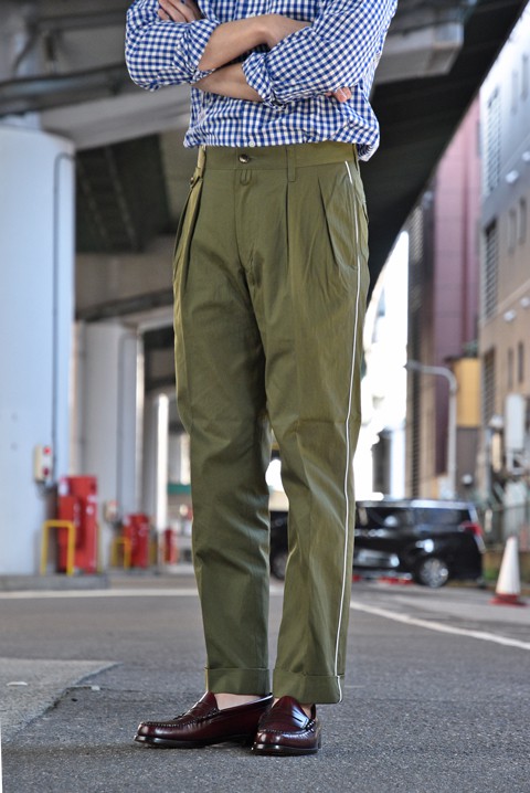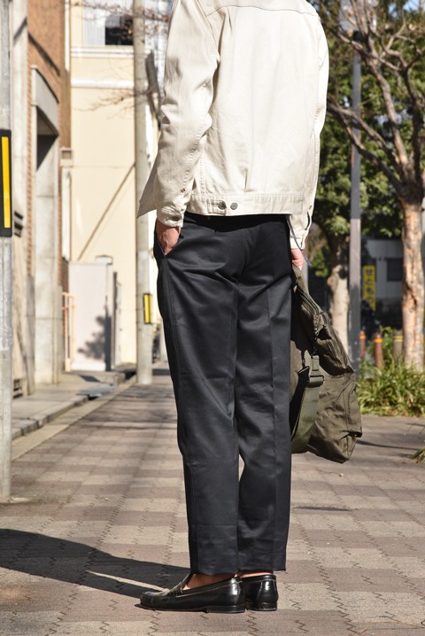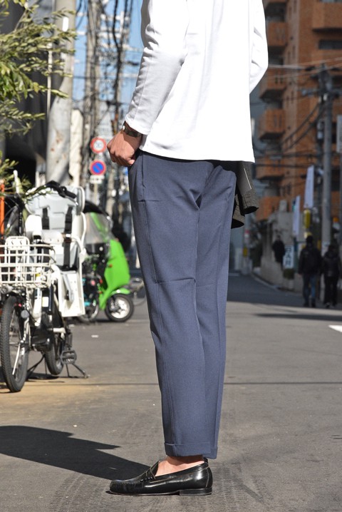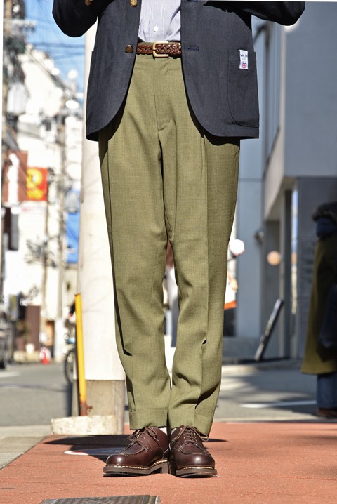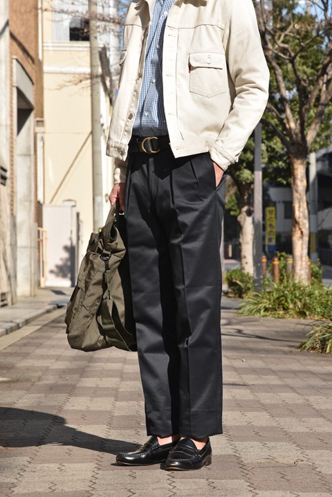 前回のフェアでも人気の高かったマッカッサー2。 ダグラス・マッカーサーが好んでいたトラウザーをデザインソースに復刻。今回の新色ネイビーも見逃せない一本です。