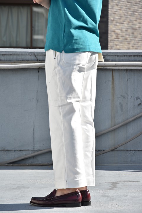 西海岸のサーフカルチャーをイメージして作られた、ユルい雰囲気が絶妙なトラウザー。 カットソーにジャケットなんて組み合わせでリラックススタイルがいいかも。