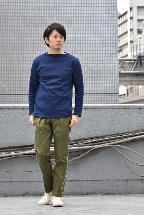 どうもです。瀬川です。 昨日より開催のBARNSTORMER(バーンストーマー)販売会。 本日もご来店ありがとうございました。大阪店舗での開催は今週の日曜までですので、引き続きお楽しみくださいませ。 さて、今回は期間限定ということで、定番で展開しているチノパン以外にもいろいろとご用意しております。 カジュアルのパンツをスラックス仕立てで作るバーンストーマーのパンツは、コーディネートしやすい振り幅の広さがおすすめポイントの一つ。 スラックス仕立てと聞くとシャツにジャケット、レザーシューズと組み合わせた方が良いのかなと頭をよぎる方もいらっしゃるかと思います。 もちろん、それはよく似合います。どのモデルもそれぞれシルエットが抜群に綺麗ですから。 ですが、もっとデイリーなカジュアルスタイルにもおすすめ出来るのがバーンストーマーのパンツなのです。 デイリー(普段着)な春のZABOU styleに落とし込むと。 ●帽子 JAPAN BLUE JEANS(ジャパンブルージーンズ)  ¥6,480- ●カットソー Saint James(セントジェームス)  サイズ:5  ¥11,664- ●パンツ BARNSTORMER(バーンストーマー)  サイズ:M  ¥20,520- ●シューズ G.H.BASS(ジーエイチ・バス)  サイズ:8  ¥17,280- ●バングル white buffalo(ホワイトバッファロー)  ¥102,600- 身長175cm 体重65kg 足のサイズ26.5cm ザボウの定番アイテム、セントジェームスのボーダーカットソーと合わせたコーディネート。 ワークスタイルのパンツですが砕けすぎず、品の良い印象を持たせることが出来るのです。 特にこのワークトラウザーなら、普段ジーンズやワークパンツに慣れた方でも取り入れやすいはず。 さらに力を抜いて。 ●カットソー Saint James(セントジェームス)  サイズ:5  ¥11,664- ●パンツ BARNSTORMER(バーンストーマー)  サイズ:M  ¥20,520- ●シューズ MOONSTAR(ムーンスター)  サイズ:26,5cm  ¥9,180- 身長175cm 体重65kg 足のサイズ26.5cm 足元もレザーシューズ以外に、コンバースやムーンスターのようなすっきりとしたものを合わせても◎ シャツやジャケットと合わせるのは基本スタイルとして、リラックスしたデイリーカジュアルにもバーンストーマーのパンツを取り入れてみてください。パンツはコーディネイト全体のイメージを大きく左右しますから。 今日使用したパンツは2型ですが、他にもたくさん種類がございます。 その他ラインナップはこちらからどうぞ。 ⇒『BARNSTORMER(バーンストーマー)』 それでは、明日もご来店お待ちしております。 【大阪店】 期間:2019年1月15日(火)~1月20日(日) 時間:12時~20時 【東京店】 期間:2019年1月22日(火)~1月27日(日) 時間:12時~20時 大阪店インスタアカウント⇒@ZABOUOSAKA13 東京店インスタアカウント⇒@ZABOUTOKYO ☆通販で購入、商品詳細など詳しく見る! ⇒ZABOU WEB SHOP(ウェブショップ) 通販サイト ☆実店舗へのご案内、お店までへの行き方を地図や動画でご紹介! ⇒ZABOUのお店