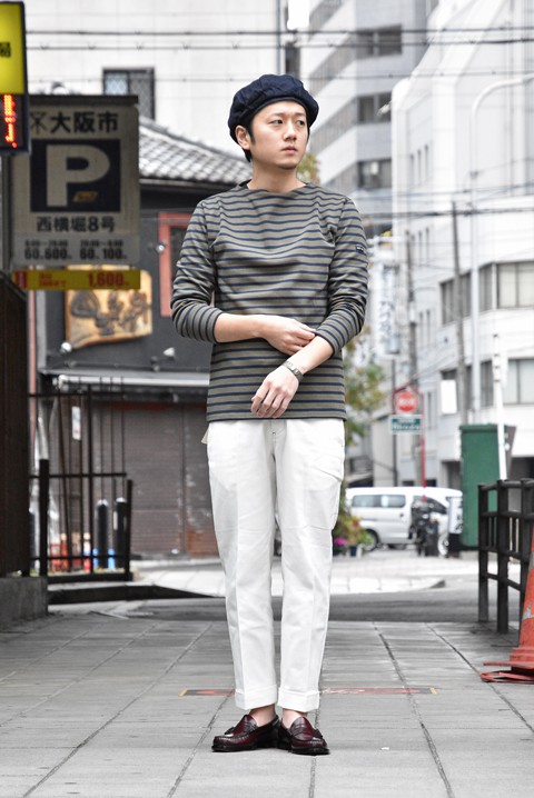 ザボウの定番アイテム、セントジェームスのボーダーカットソーと合わせたコーディネート。