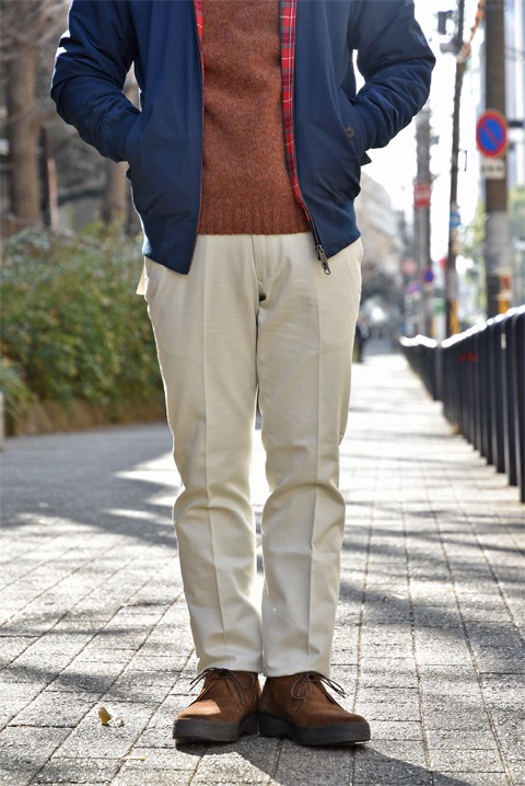 以前も申し上げた事があるのですが、このサンドカラーは、あのマックイーンが穿いていたであろうパンツの雰囲気が出ているなと私個人的には思ったりするのです。