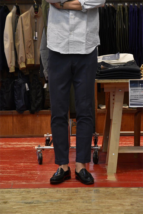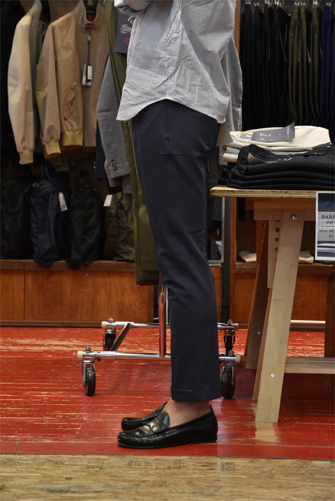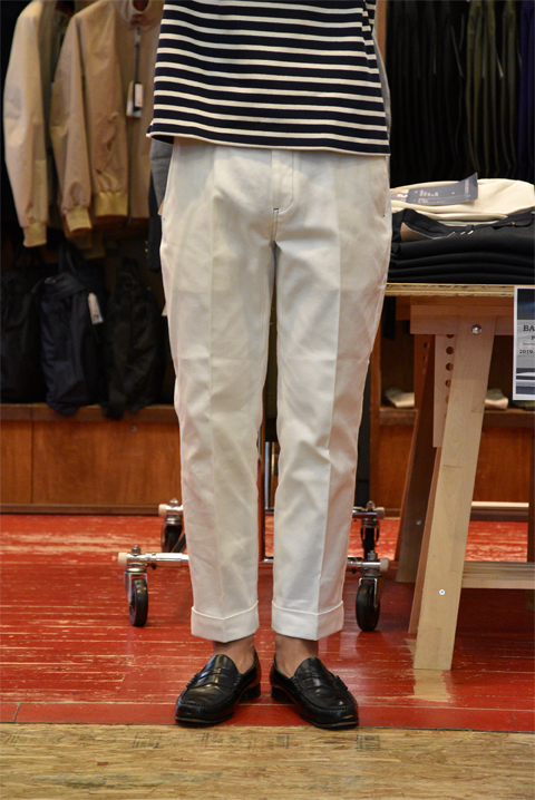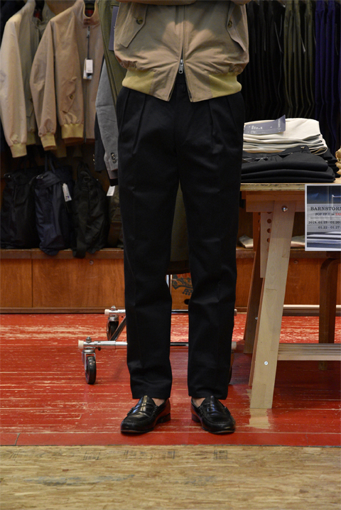 ダグラス・マッカーサーが好んでいたトラウザーをデザインソースに復刻させた一本になっており、ツータックの緩やかなテーパード。やや太目シルエットです。