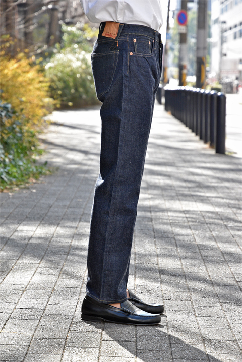 リゾルトのなかでは一番太めのシルエット。ボーイズモデルの503BXXからインスパイアされたこのモデル。 太めと言ってもヒップはコンパクトに作られており、野暮ったさを感じさせません。 緩やかなテーパードでトラウザース感覚で穿きやすいモデルです。 レングスサイズは32と36の2サイズ。