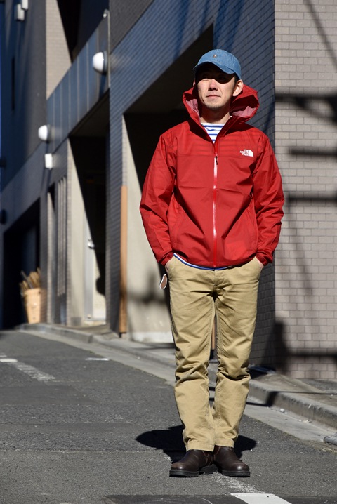 『春を意識したスポーツMIX。パッカブルのナイロンアウターは、旅行やお花見にも良さそうです。』