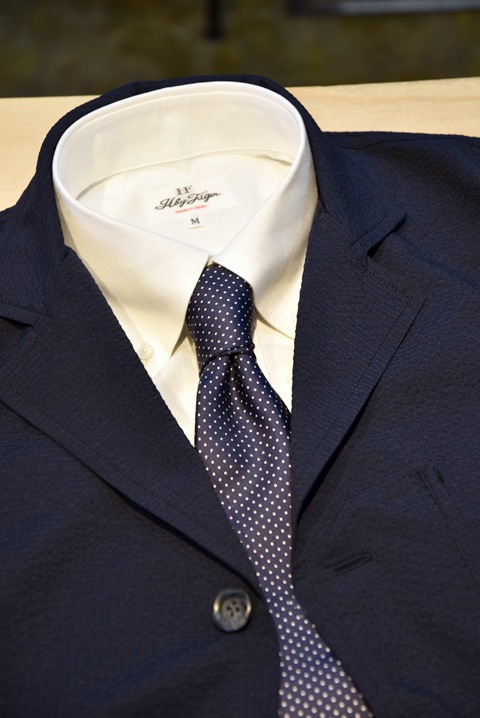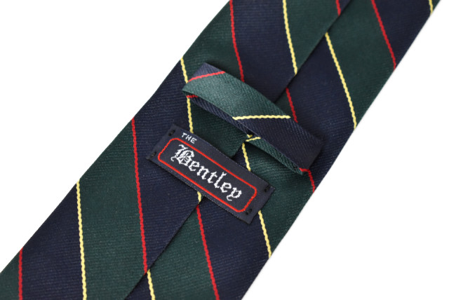 ベントレーはかつてアメリカにあった良質なネクタイの復活を目指して、左上がり、右下がりのレジメンタルを採用しているそうでございます。今でもニューヨークでハンドメイドしていることと相まって、何だかロマンを感じてしまいます。
