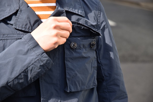 そしてアジャスター付きバックベルトを施すことにより、ウエストにシェイプのあるシャープなシルエットに。ミリタリーデザインながらも大人の品の良さがある、ミダらしさ溢れる逸品です。