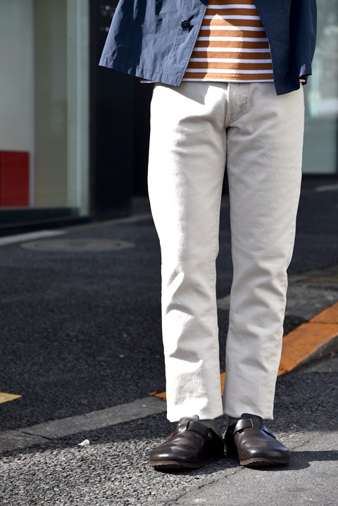 足元にはサンダルを合わせて、あくまで肩肘張らない普段着に仕上げました。
