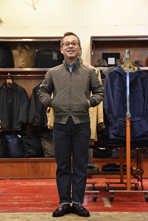 ショート丈のHarrington JK(ハリントンジャケット)をジャストサイズで着用し、シュッと細身のRESOLUTE(リゾルト)710にボタンダウンシャツはタックインしてすっきりと。