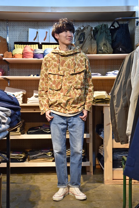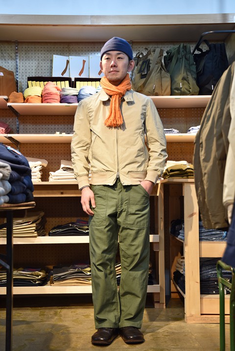 好物のジャンパーです。流行り廃りなく着れるデザインで、大人な方はもちろん若い方にも着て頂きたいですね! ボトムスもシュッと細身のパンツだけでなく、ワークパンツにも合わせれるという汎用性の高さもウリのひとつ。定番モノなだけにコーディネイトで変化をつけてお楽しみくださいませ!