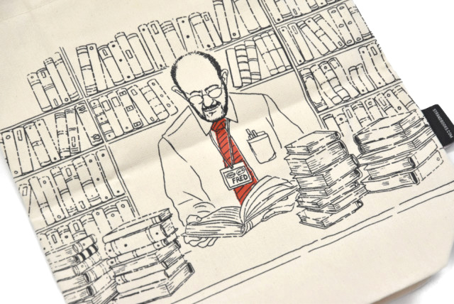 こちらのナチュラルは表裏でデザインが変わります。裏面には創業者のFREDさんがモデルになったプリント柄。