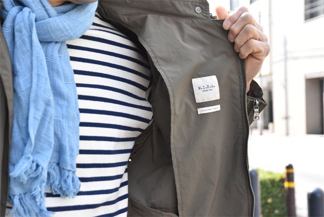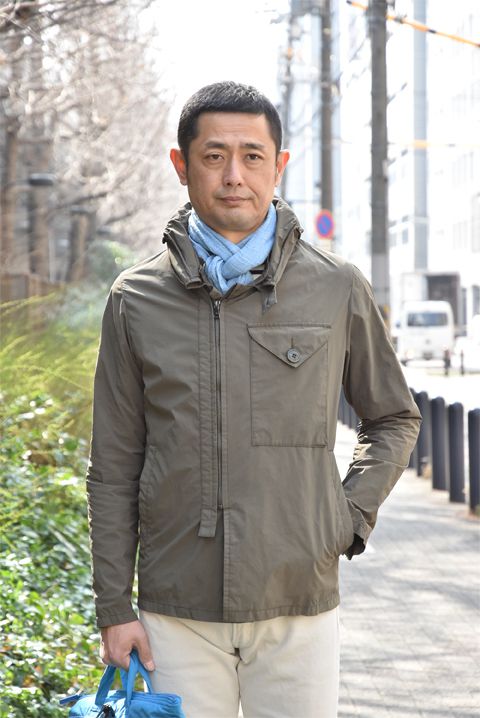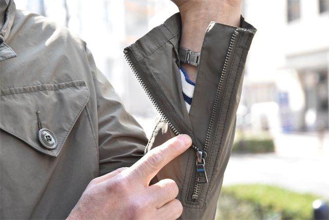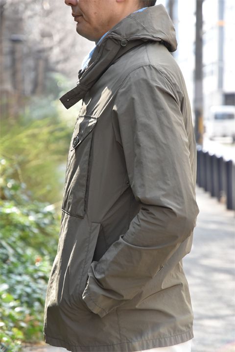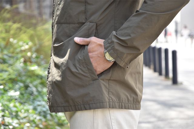 そこでZABOUのオッサンのおすすめアイテムは「UK military」でございます。なぜ良いのか!?「ありそうでない。」「アシンメトリーな作りが良い。」が主な理由でしょうか。Olive色のジャケットは何かと重宝しますよね。合物の一枚仕立てのジャケットは便利です。しかも撥水。急な雨降りでも濡れずにへっちゃら。ものぐさな野郎どもにはピッタリのジャケットでございます。軍物のジャケットをベースにモディファイしておりますので、ディティールに機能性が伴い男心をくすぐる内容も嬉しいところでございます。今回は春先と言う事もあって綺麗な色でサラッと合わせてみました。