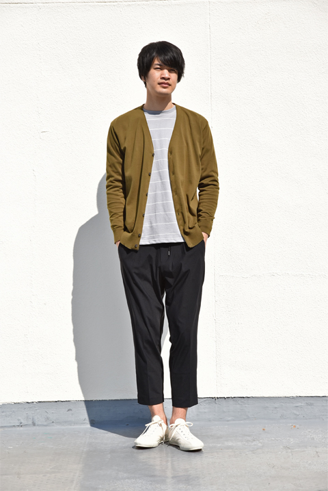 ボリュームを抑えたローテクのスニーカーやローファーがしっくりきますね。