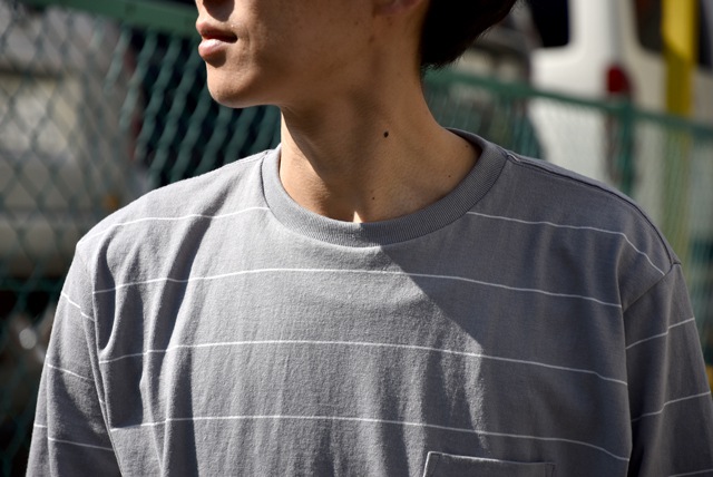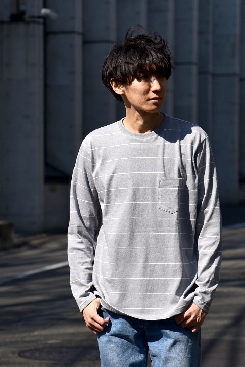 ナウンファンにはもはやお馴染み?なボーダーロンT。ただのロンTと侮るなかれ、古いスウェットのデザインを元に、生地から作っているオリジナルの一着なのでございます。柔らかなコットン100%の生地が着心地良く、また着込むほどにデコボコとした風合いの変化が出てくるのが楽しみ。