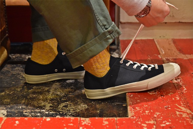 シンプルなローカットスニーカーに合わせると凹凸ある生地感がより際立ちます。