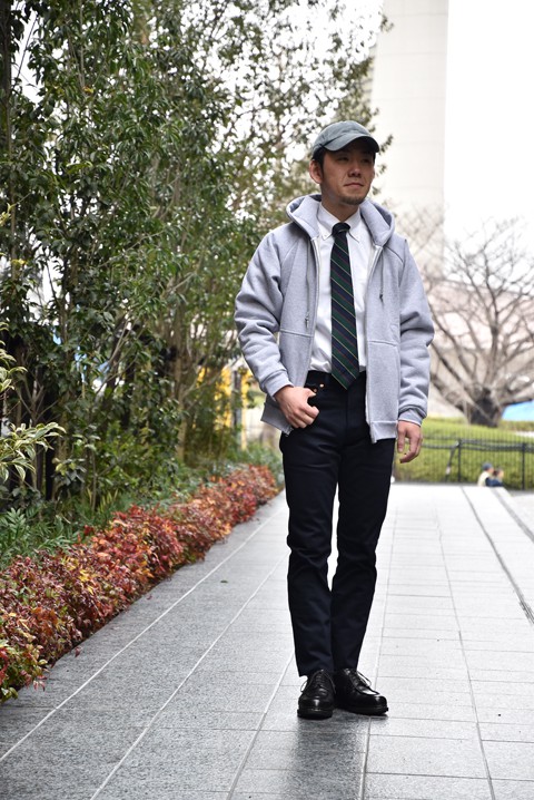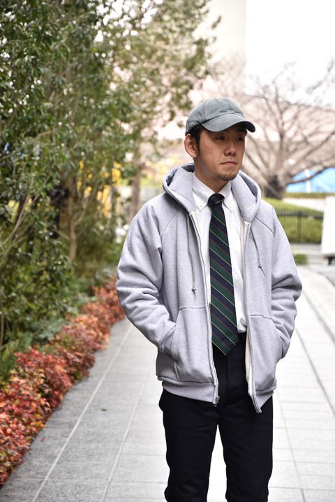 どーも、どーも。東京店スタッフの大井勇人です。 皆さま、もう衣替えはお済みでしょうか? 僕もようやくダウンやらの冬服はしまって、2月下旬くらいからはNOセーター、NOダウン生活です。気分的にももう冬服は飽きたし、少し春を意識したコーディネイトで楽しみたいですよね! とまぁ、気持ち的には"春"なんですが実際のところまだ寒いってのが本音。。しかーし、寒さを防ぎつつ春のファッションを楽しめるアイテム、スウェットは僕たちの強い味方だ!! はい、Camber Ⅱ(キャンバー・ツー)チルバスターパーカがおすすめです。 Camber Ⅱ(キャンバー・ツー)チルバスタープルオーバーパーカー   ¥10,368 ZABOU定番のスウェットですね! 冬の寒い日はあったかインナーとして大活躍。季節の変わり目、まだ寒さの残る春には主役として大活躍。 お気に入りのディティール等は過去のザボブロにてご紹介しておりますのでそちらを。⇒『この冬もこれ着て過ごします。Camber Ⅱ(キャンバー・ツー)チルバスターパーカー』 僕のいつものスタイル、安心感ありますね。 ●帽子 YOKISHOP(ヨキショップ)  ¥6,264 ●スウェット Camber Ⅱ(キャンバー・ツー)  サイズ:S  ¥10,368 ●カットソー Saint James(セントジェームス)  サイズ:T4  ¥11,664 ●ベルト N.O.UN(ナウン)  ¥5,184 ●パンツ GUNG HO(ガンホー)  サイズ:30  ¥8,964 ●サンダル BIRKENSTOCK(ビルケンシュトック)  サイズ:41  ¥18,360 身長168cm 体重58kg 足のサイズ約26cm 春ですからね。いつもと違う格好もしたくなるんですよね。 ジップパーカーなら一層アウター感覚でのコーディネイトを楽しめます! Camber Ⅱ(キャンバー・ツー)チルバスターフルジップパーカー  ¥10,800 ●帽子 私物 ●スウェット Camber Ⅱ(キャンバー・ツー)  サイズ:S  ¥10,800 ●ネクタイ Brooks Brothers(ブルックス・ブラザーズ)  ¥9,180 ●シャツ H by FIGER(エイチバイフィガー)  サイズ:S  ¥10,584 ●パンツ F.O.B FACTORY(エフオービー ファクトリー)  サイズ:29  ¥12,960 ●シューズ Paraboot(パラブーツ)  サイズ:UK7  ¥70,200 身長168cm 体重58kg 足のサイズ約26cm プルオーバー、ジップアップ共に全カラー・全サイズ再入荷しておりますので是非このタイミングで! 冬も春もスウェットがおすすめです。⇒『スウェット・パーカ一覧』 それでは明日のご来店もお待ちしております。 大阪店インスタアカウント⇒@ZABOUOSAKA13 東京店インスタアカウント⇒@ZABOUTOKYO ☆通販で購入、商品詳細など詳しく見る! ⇒ZABOU WEB SHOP(ウェブショップ) 通販サイト ☆実店舗へのご案内、お店までへの行き方を地図や動画でご紹介! ⇒ZABOUのお店