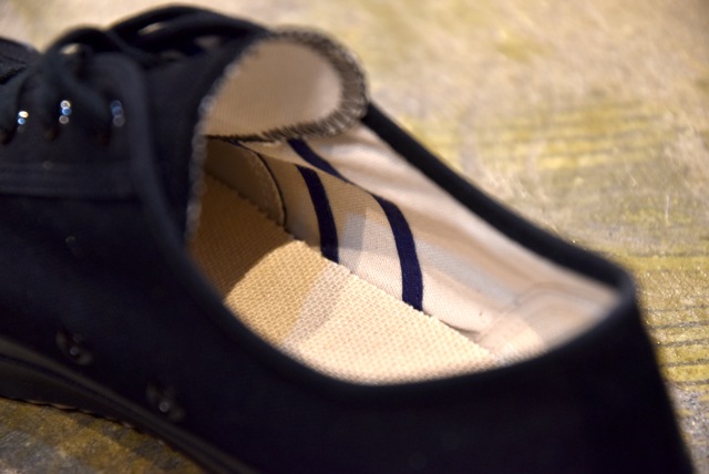 アウトソールにはファインヴァルカナイズ製法の為に作られたファインヴァルカナイズラバーを採用しています。足袋工場としてスタートした140年の歴史を誇るムーンスターのラバーソールは、濡れた路面でも抜群のグリップ力を発揮します。確かに足袋っぽい。