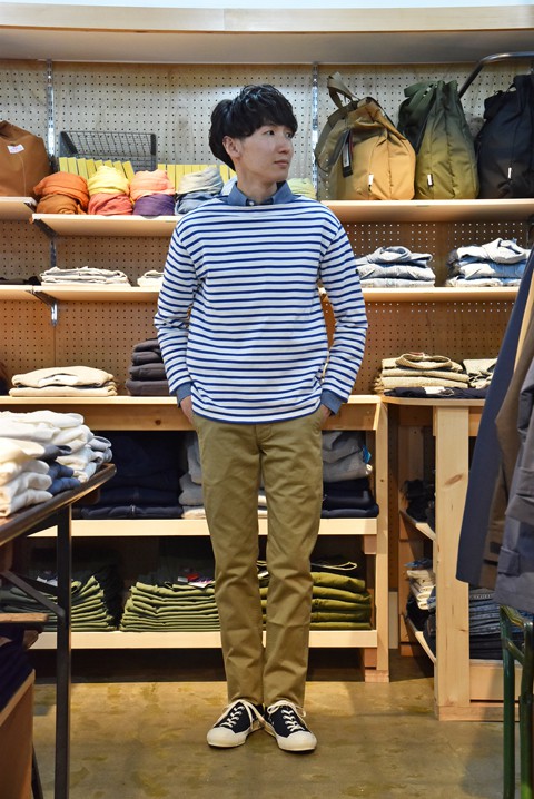 シュッとしたチノパンでまずは春のコーディネートをお楽しみくださいませ!