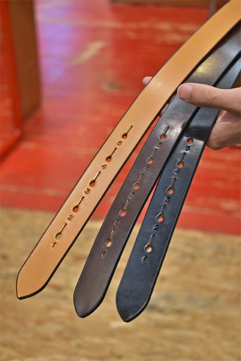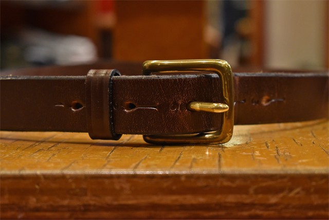 非常に厚手で堅牢なベルトであるがゆえ、使い始めは堅さがありしなやかさに欠ける印象があるかもしれませんが、レザーのエイジングと共にウエストのカーブに沿って馴染んでくると、“しっくり”くる事このうえなしです。そして、長年の使用にもビクともせず、とても丈夫で長持ちします。