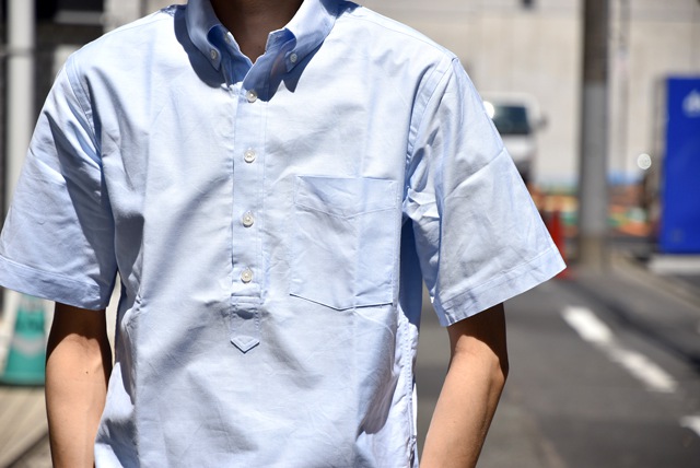 プルオーバー(かぶり)タイプながら身幅がすっきりとしたシルエットで、程よくヌケ感がありつつも適度にボタンダウンならではな緊張感のある見え方をしてくれます。