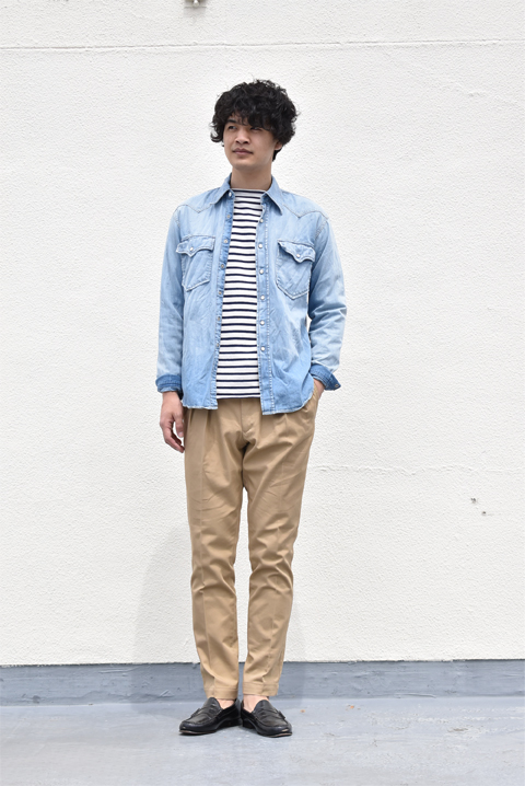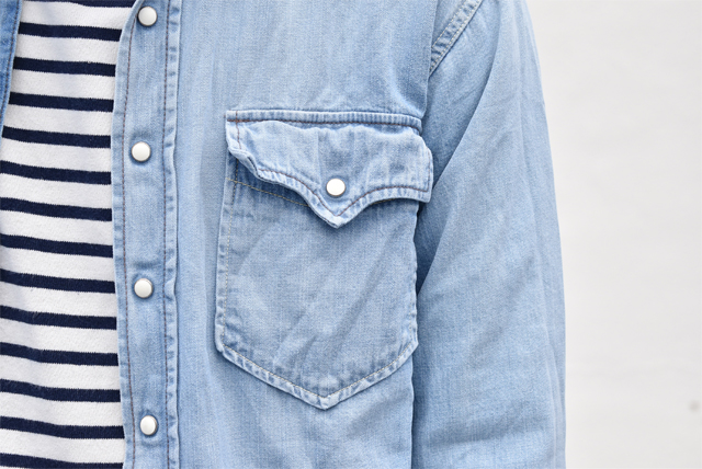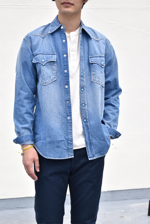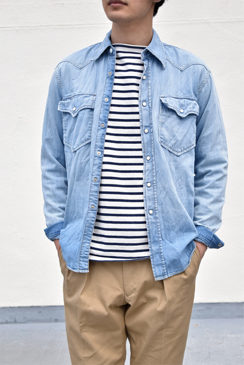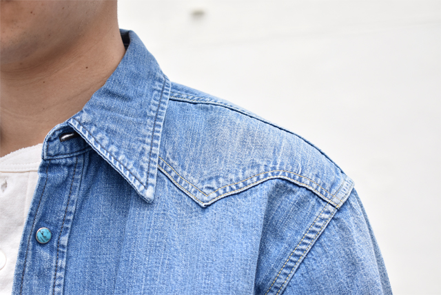 シンプルなシャツではございますが、ウェスタンシャツ独特のディティールは程よくコーディネートのアクセントになり、ちょっとしたジャケット感覚で羽織って頂けます。