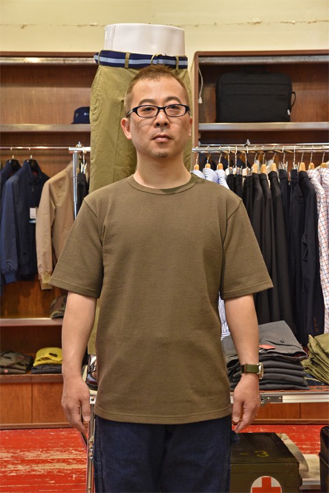 こちらのTシャツは、“がっしり”とした生地感が特徴の米綿を使用した鹿の子編みのTシャツです。鹿の子編みは、吸汗性や通気性が良いのが特徴で、伸縮性に富んでいることもあり肌にまとわりつきにくく快適に着用できます。
