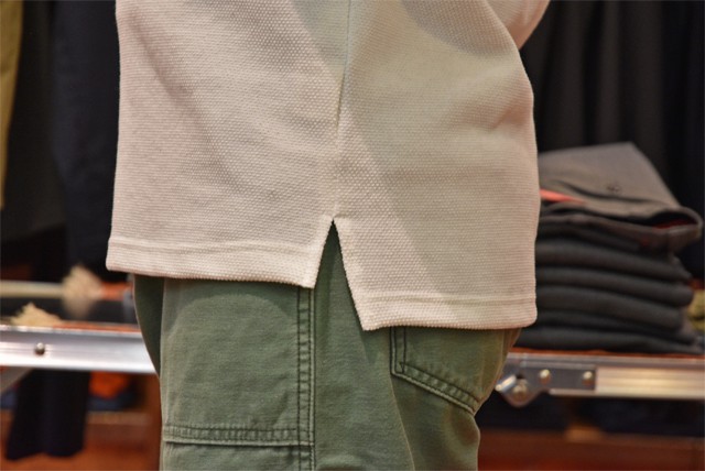 鹿の子編みの生地感です。(ポロシャツによく使用されていますね。)