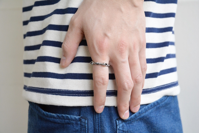 単品使いでも存在感はありますが、ナロー幅なのでブレスレットとの重ねづけもオススメです。