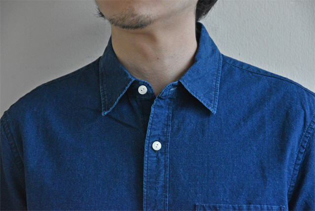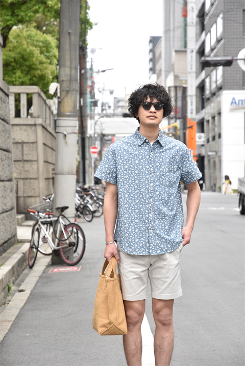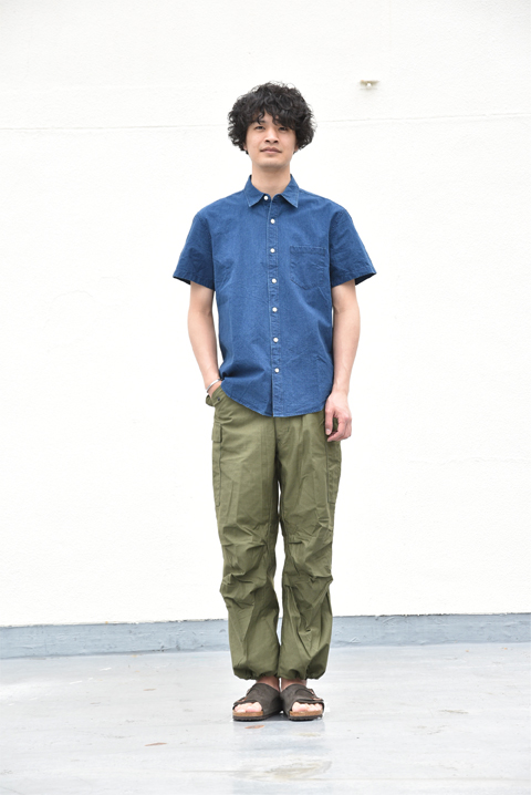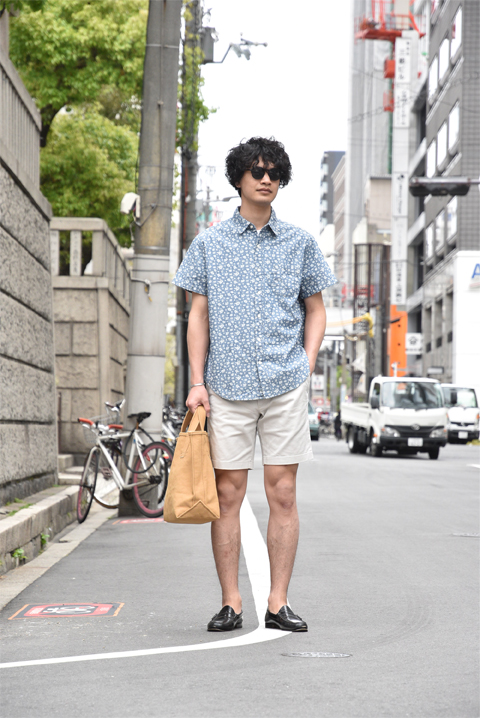 ムラのあるシャンブレーのような淡目の生地感には、ホワイトのショーツとのカラーバランスが好みです。