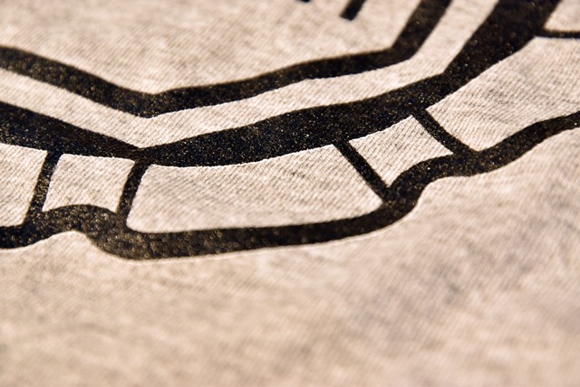 グレーのボディのみ2重プリントを採用。最初に白でプリントした後に、上から黒もプリントしています。(あえて少しズラしてるのがポイント!) これによりプリントが少し立体的に見えるんです。
