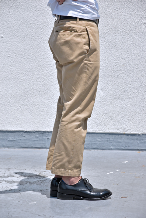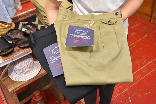 本来ミリタリーウェア、ワークウェアとしてのチノパンも当時からドレス仕立てで作っていたバーンストーマーにかかれば