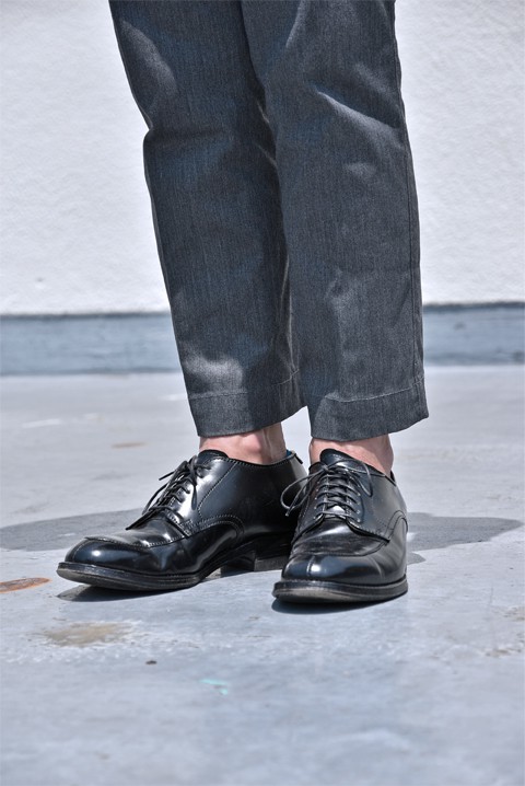 履き方は人それぞれですが、坂口の場合、短めくるぶし丈で裾上げして