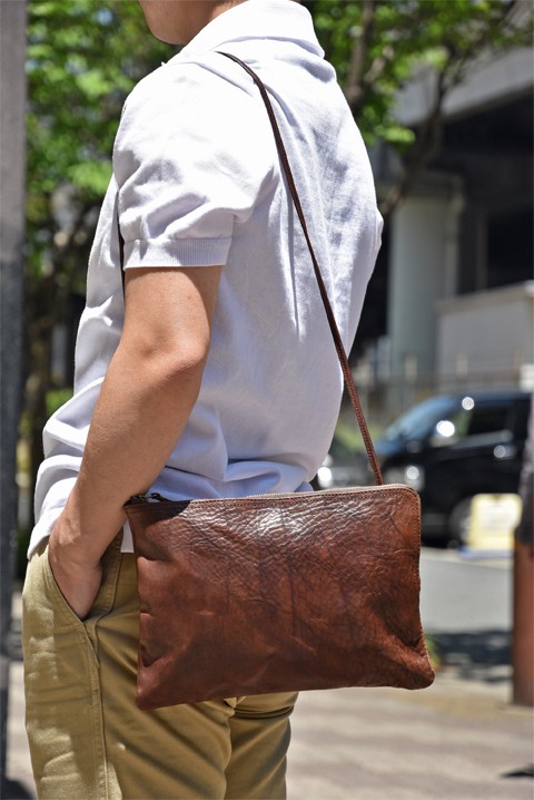 こちらは、クラッチショルダーバッグよりも小ぶりでさらに薄く細かく収納できるタイプで、同じくショルダーとクラッチバッグの2WAY仕様。