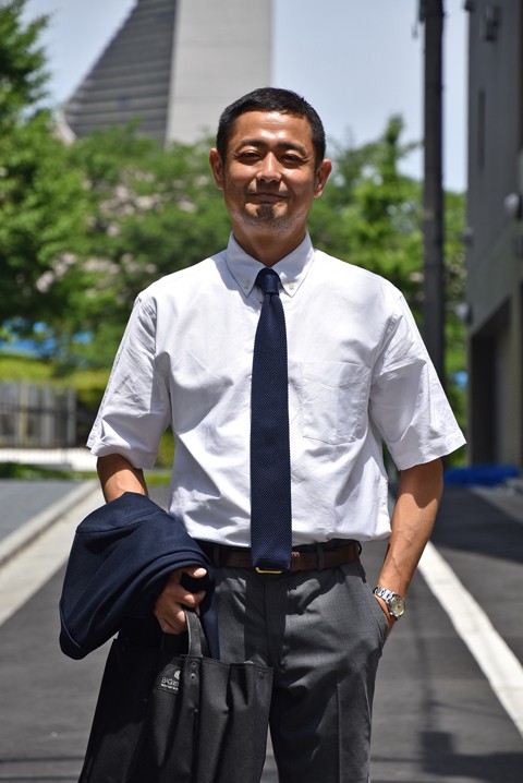 長袖を袖捲りするのも良いですが、酷暑な日本の夏にはシャツも半袖がよろしいかと。